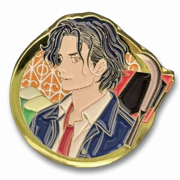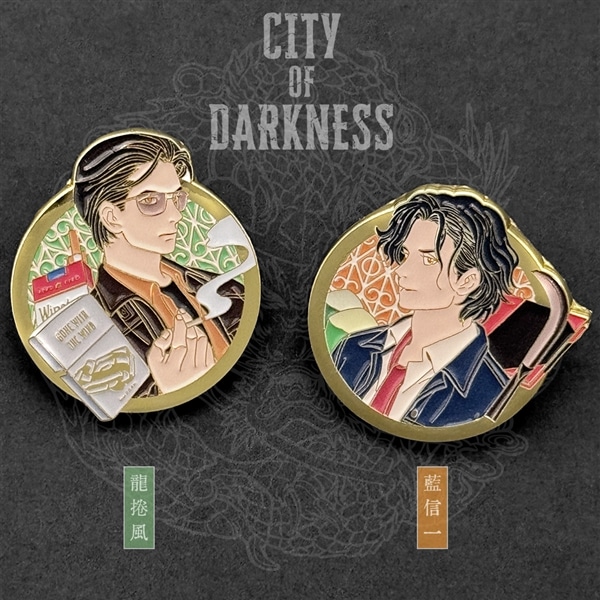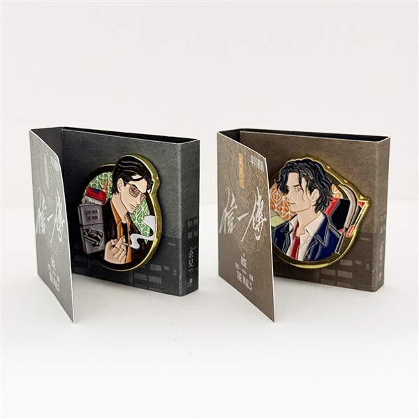シリーズスピンオフ『九龍城砦外伝 信一伝』より、二人の姿をかたどったピンバッジが登場です。