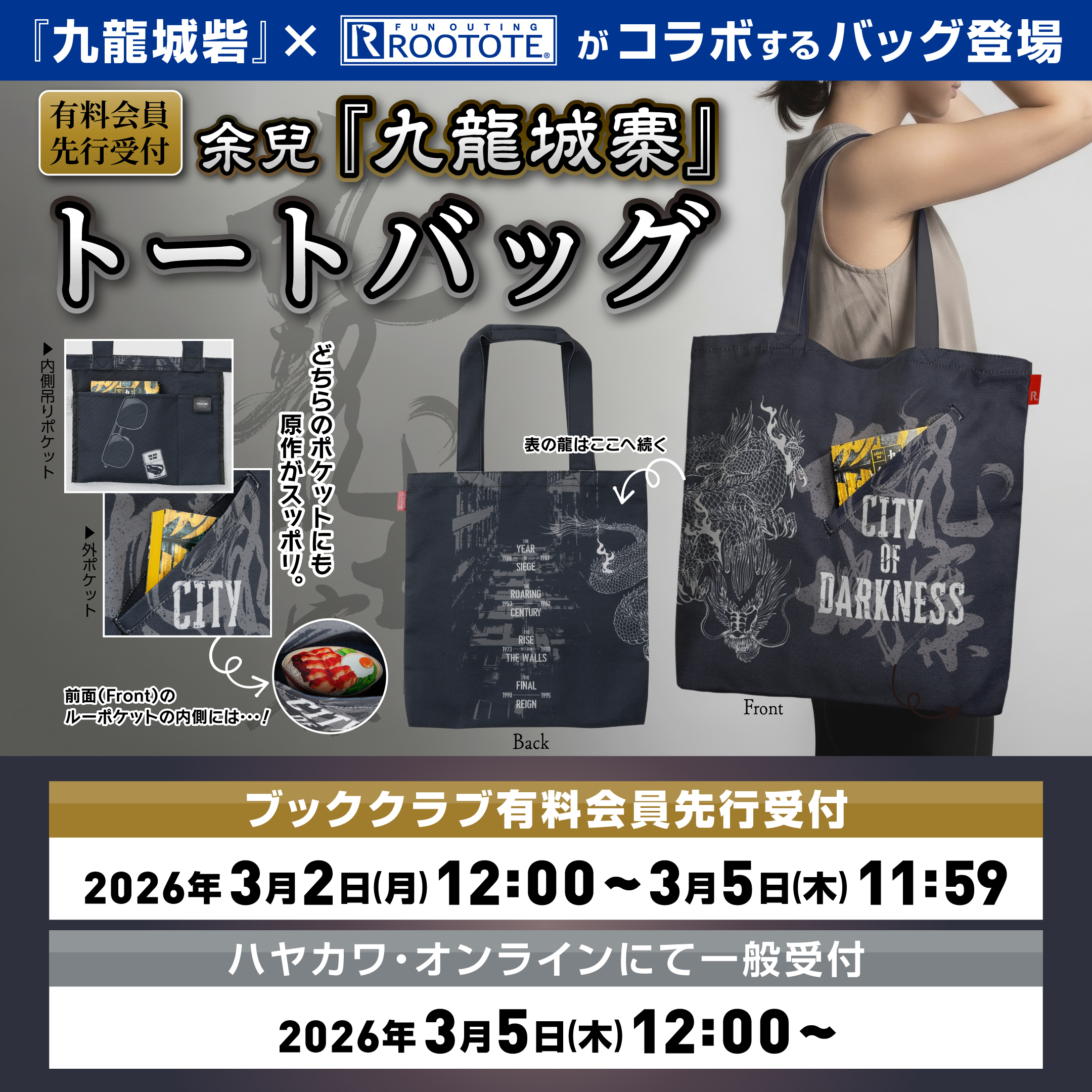 映画「トワイライト・ウォリアーズ」原作、余兒『九龍城砦』(早川書房刊)とROOTOTE(ルートート)がコラボしたトートバッグが登場です!