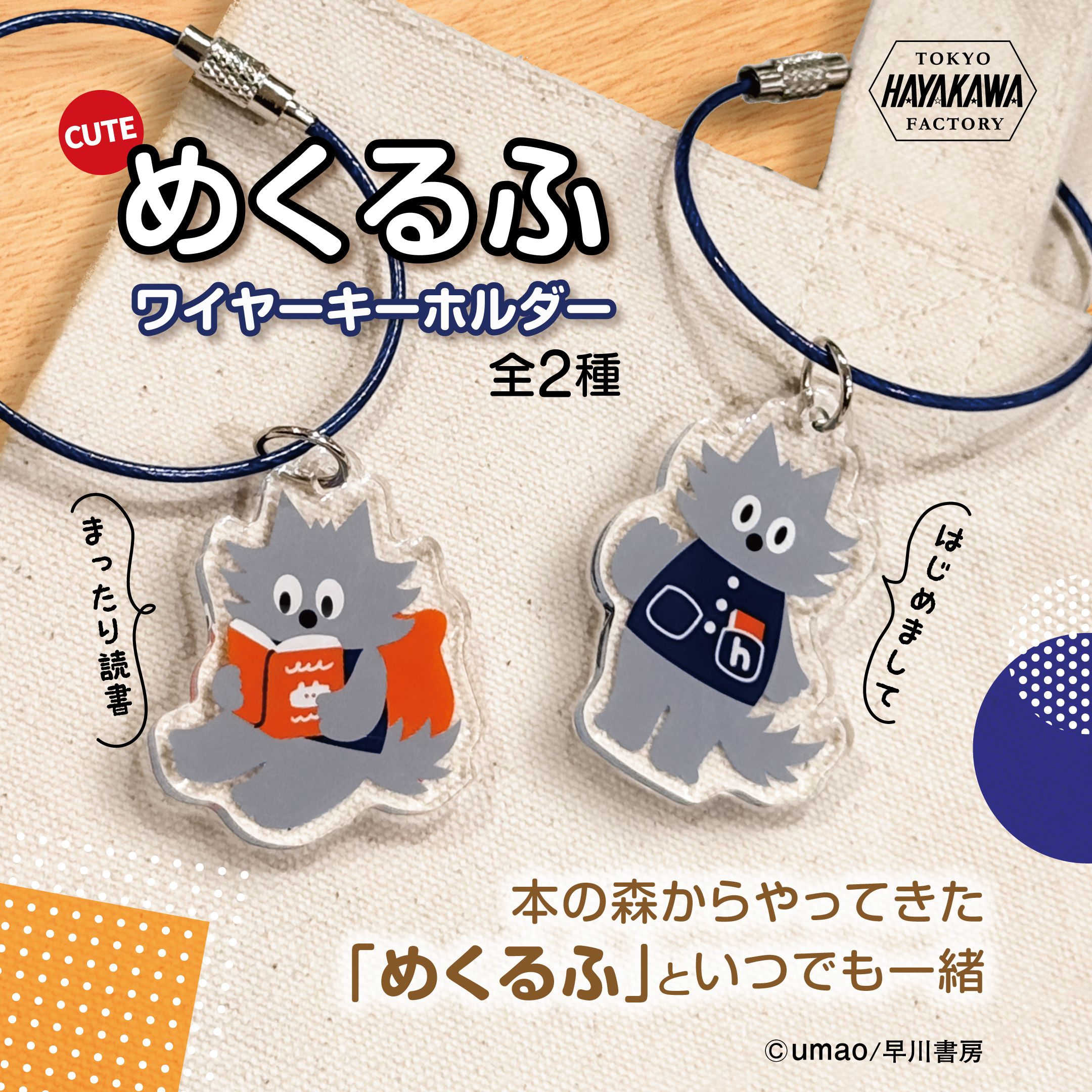 【5月7日より販売開始】【セット商品】早川書房公式キャラクター「めくるふ」グッズ ワイヤーアクリルキーホルダー 「はじめまして めくるふ」「まったり読書 めくるふ」