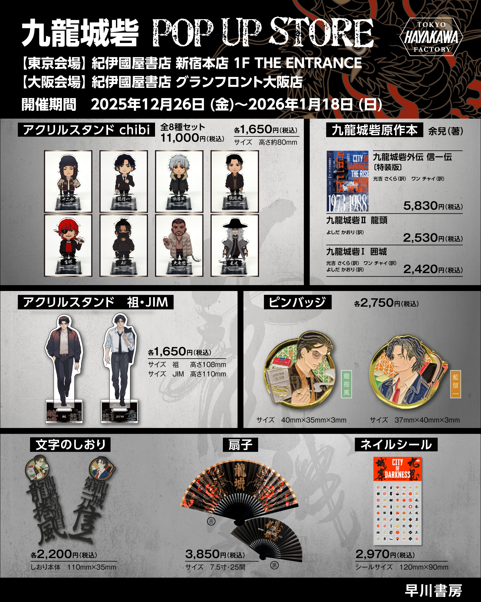 九龍城砦 POP UP STORE【九龍城寨 快閃店】、紀伊國屋書店新宿本店及びグランフロント大阪店で開催!