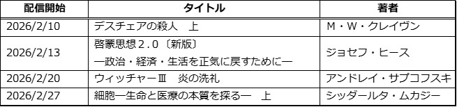 まだ冬の名残が空気に漂う2月。凛とした冷たさの中にも、春の気配がそっと近づき始めるこの季節に、新たな物語との出会いが訪れました。「早川書房のオーディオブック」2026年2月の新作として、Audible (オーディブル) から4作品を配信。こちらはAudible会員プラン聴き放題対象作品です☆